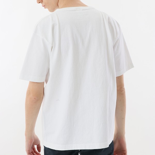 脇部分に縫製がなく、胴周りを一枚の布で仕上げた丸胴仕様 縫製後の製品を水洗し、購入後の洗濯における縮みを軽減出来るガーメントウォッシュ加工。