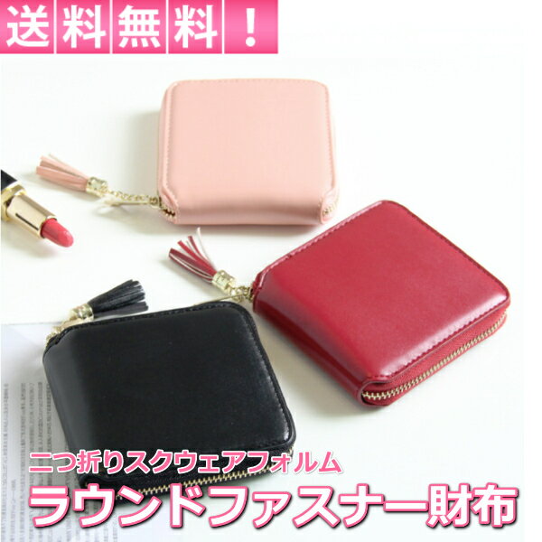 財布 二つ折り レディース コンパクト ラウンドファスナー 2つ折り スクエア 春カラー プレゼント
