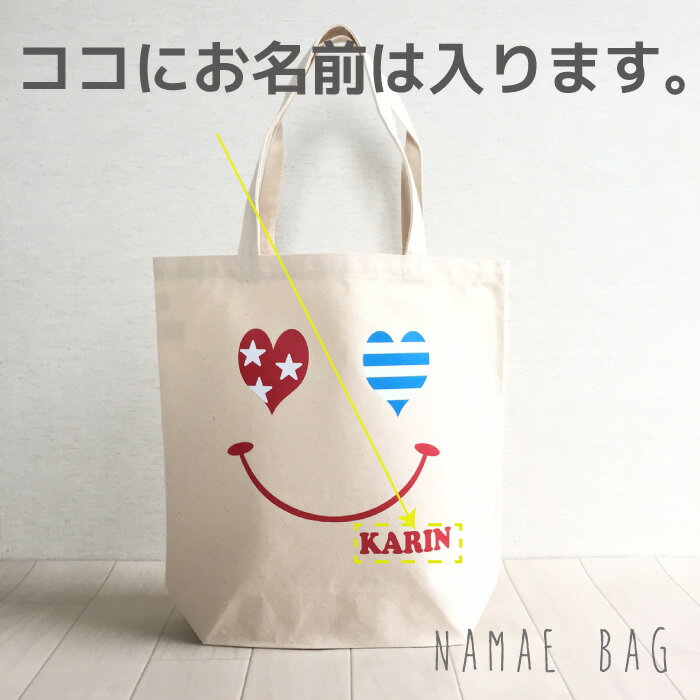ギフト対応 世界でたった一つ!!スマイルデザイン! お名前入りキャンバストートバッグです。